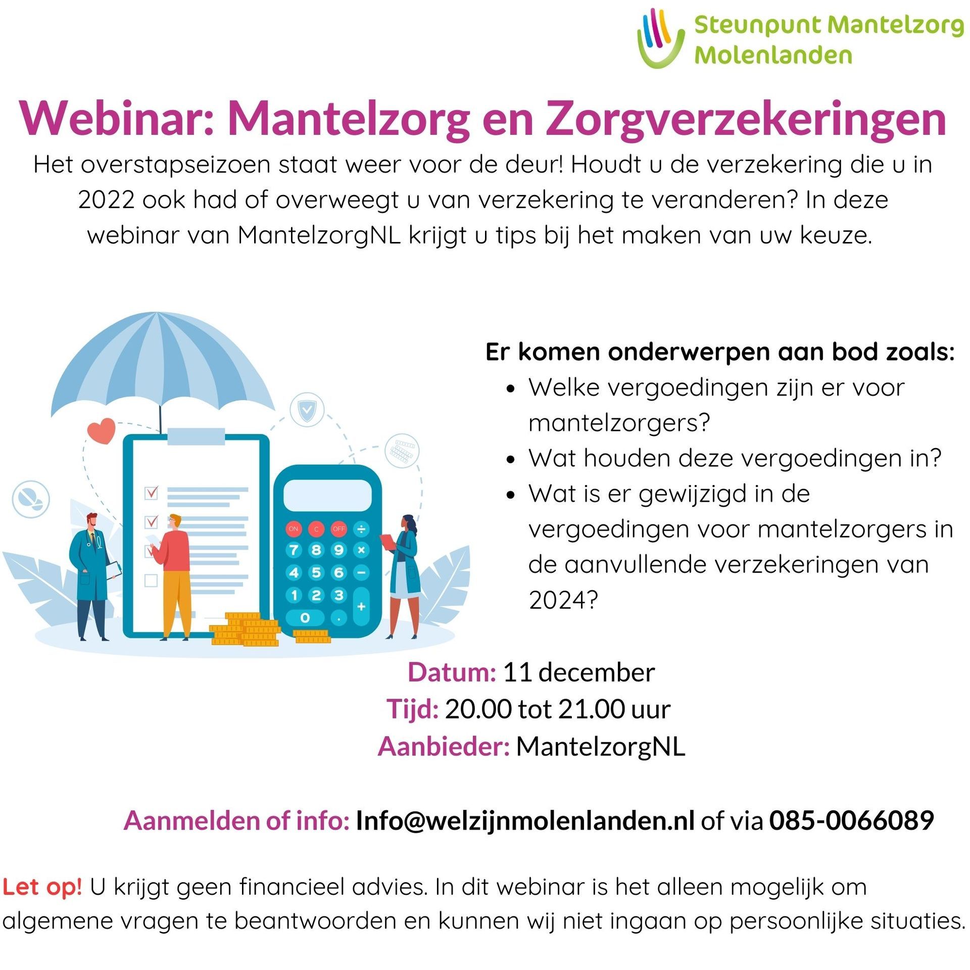 Op 11 december kunt u deelnemen aan de webinar Mantelzorg en Zorgverzekeringen.